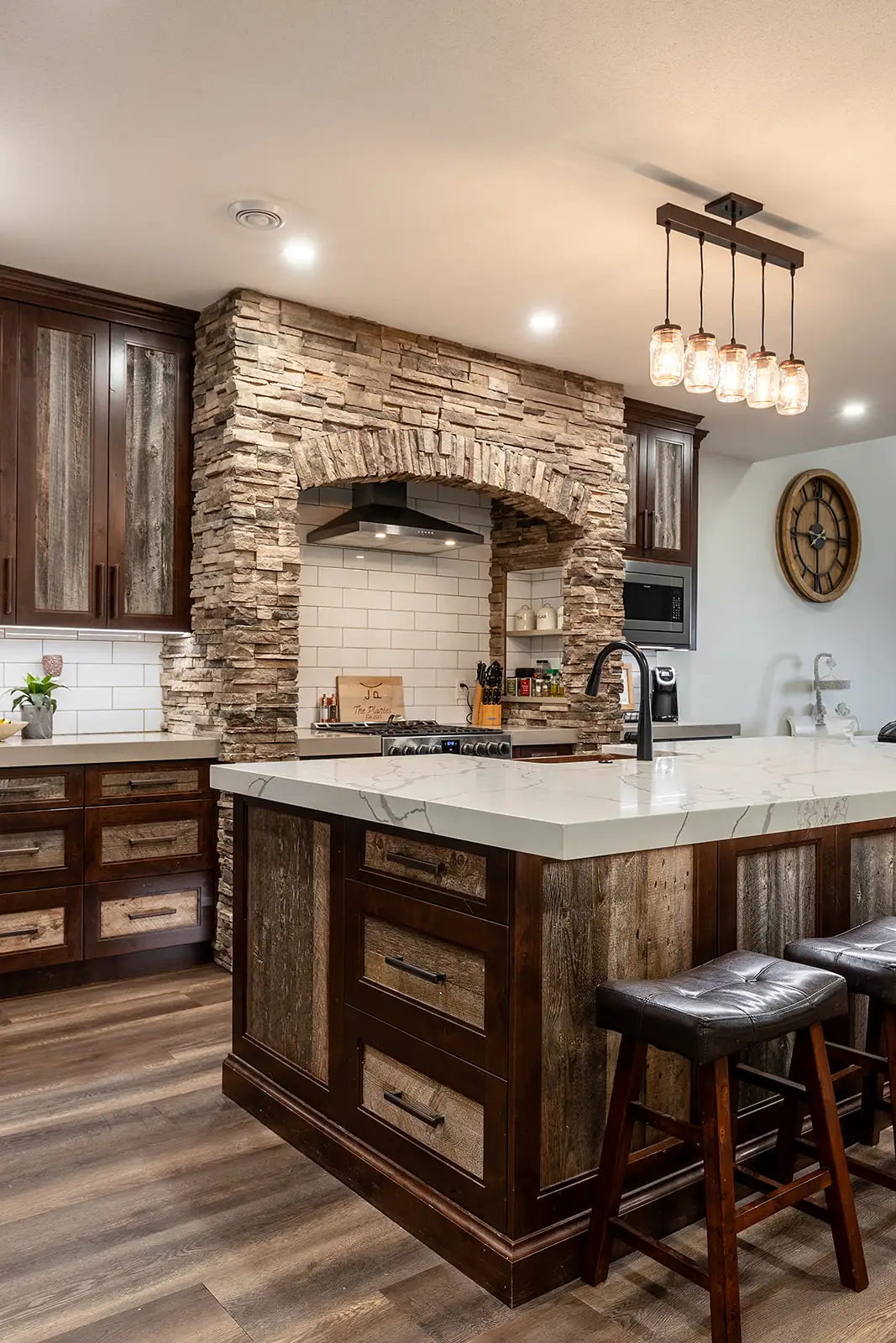 Embracing the natural aging and weathering of materials in wood, stone and wrought iron.